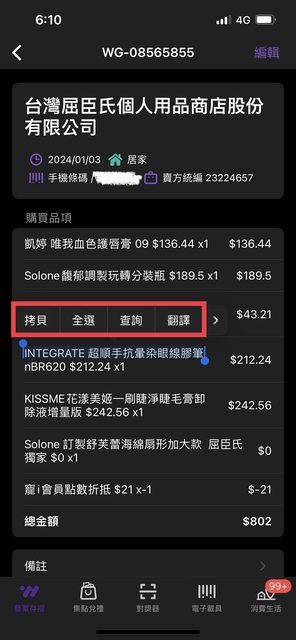 居然沒辦法截圖發票裡面商品的文字!!!!!