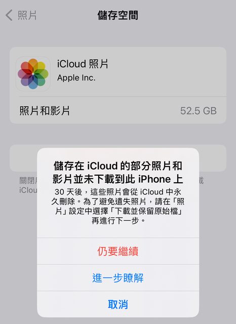 : 按關閉同步功能他又說我無法下載照片…照片會從iPhone全部移除?!