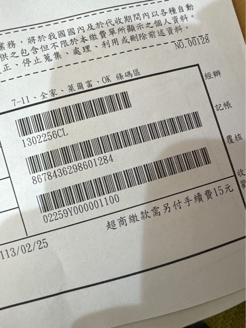 繳款帳號是一連串數字 如下圖條碼形式