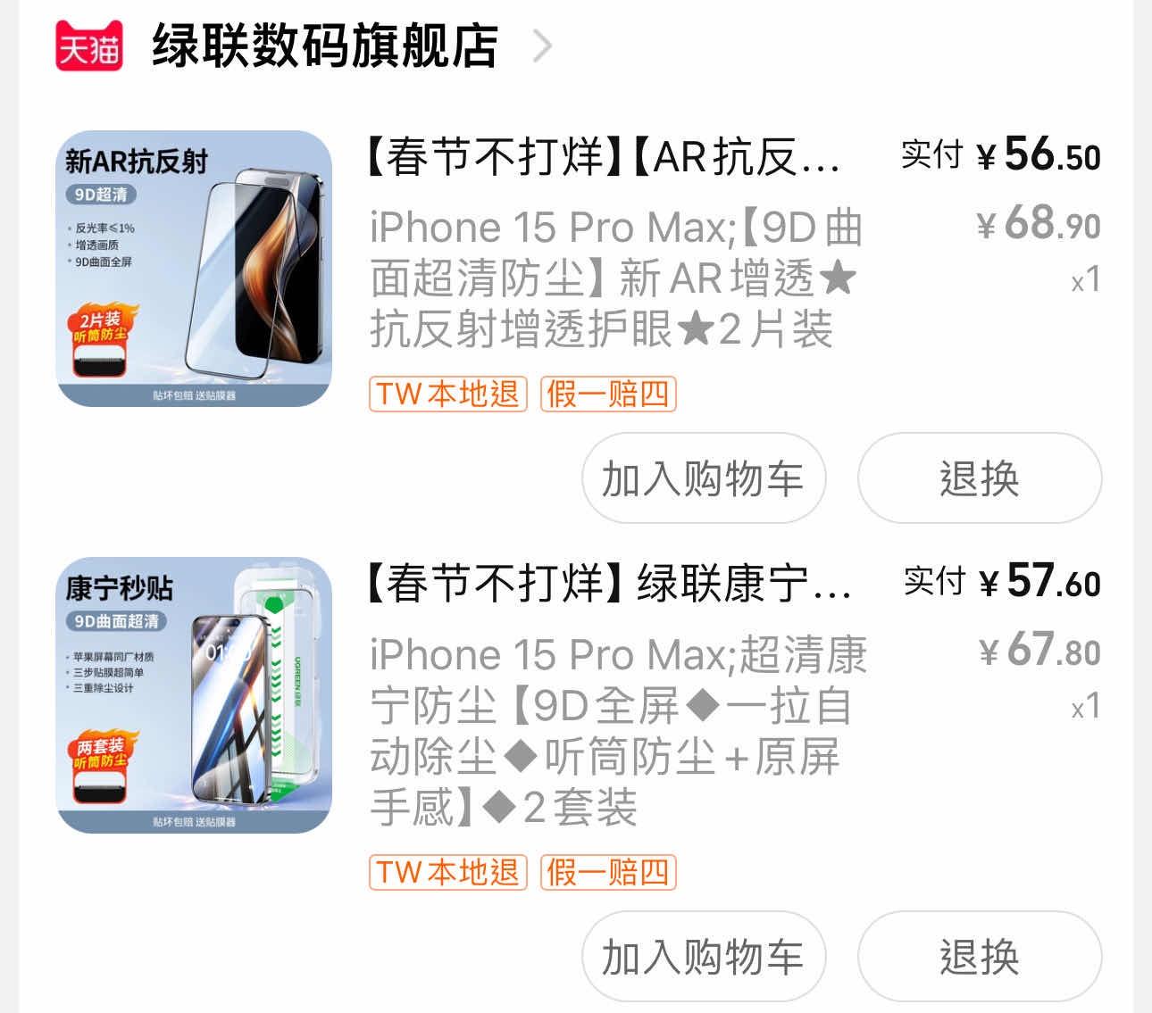 → hatano: 在淘寶買的貼了3張閃魔康寧無塵倉15pro邊邊都會白 02/23 18:37