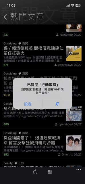 → kpg0427: 如果你的其他app可以使用wifi網路,那就是單一app問題, 02/27 13:42