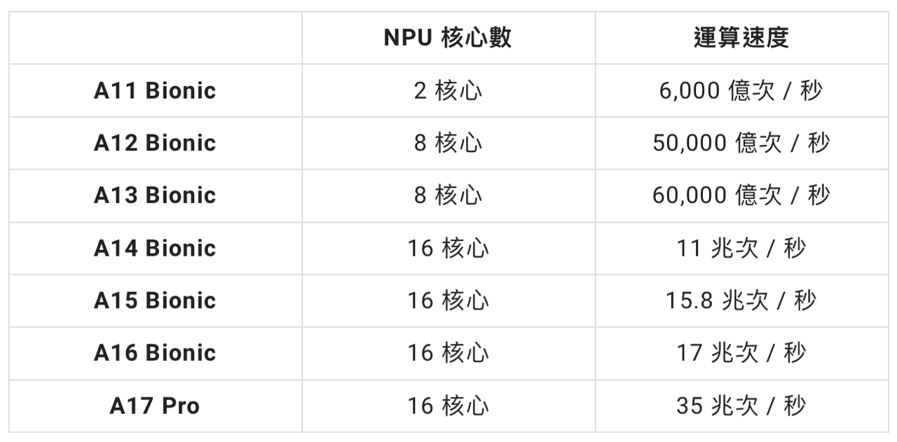 kivan00: 要看有什麼殺手級應用 A17 Pro的NPU效能對比A16爆增2倍 03/18 13:36