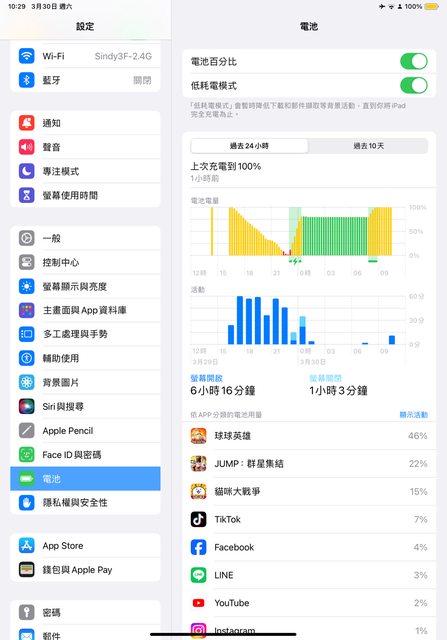 昨天晚上幫女兒的ipad 10 充電