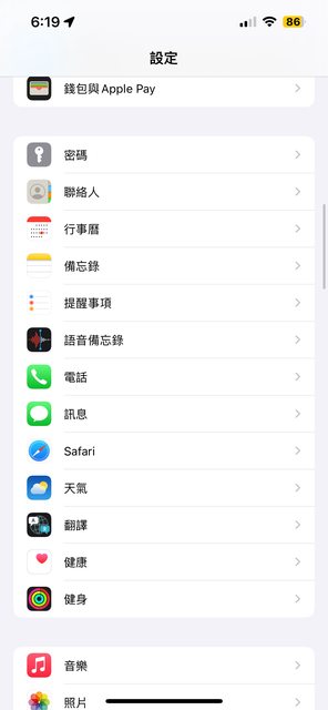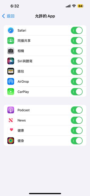 內容與隱私 允許的App裡也找不到