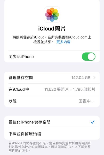 買icloud釋出手機空間後,想從icloud把照片備份下來