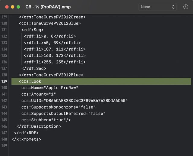 而這些描述檔沒辦法正確還原 ProRAW 自帶的 Tone Curve (Gain Map),