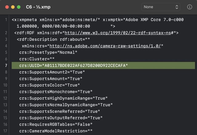 (裡面的 crs:UUID="..." 是有意義的,不要刪改)