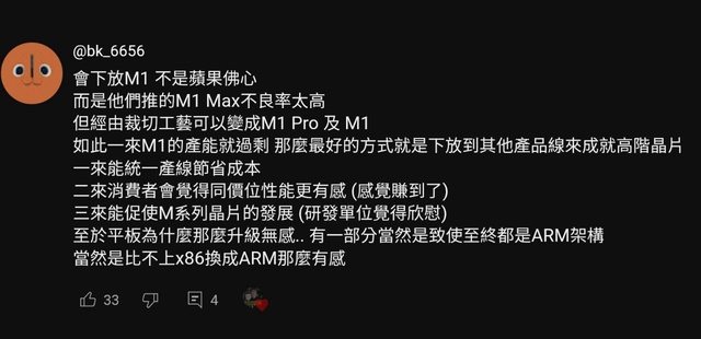 推 Reze: M1Max和M1面積差了3倍,對半導體0認識才能說出M1Max切成M105/16 08:38