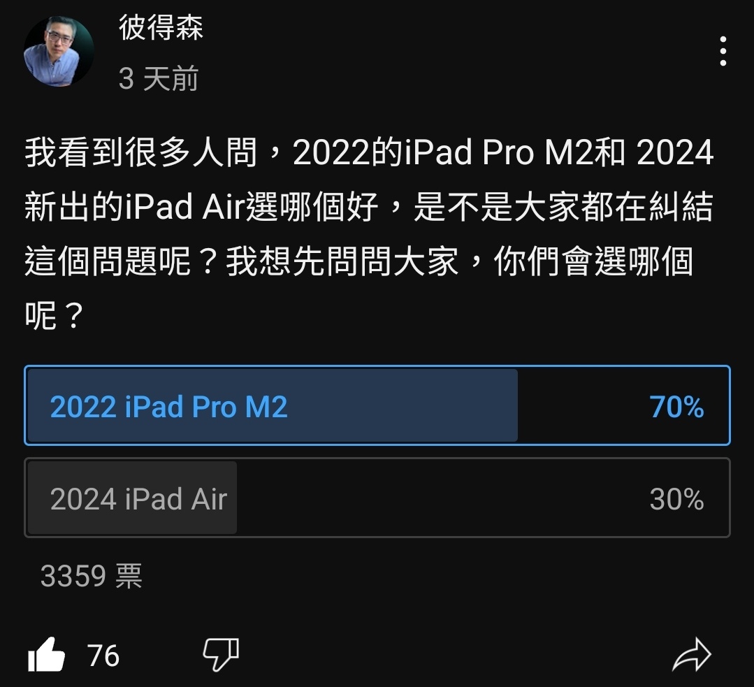 推 gary8442: 2024新機一發表就一堆人搶購2022 m2 iPad Pro了。 06/05 16:43