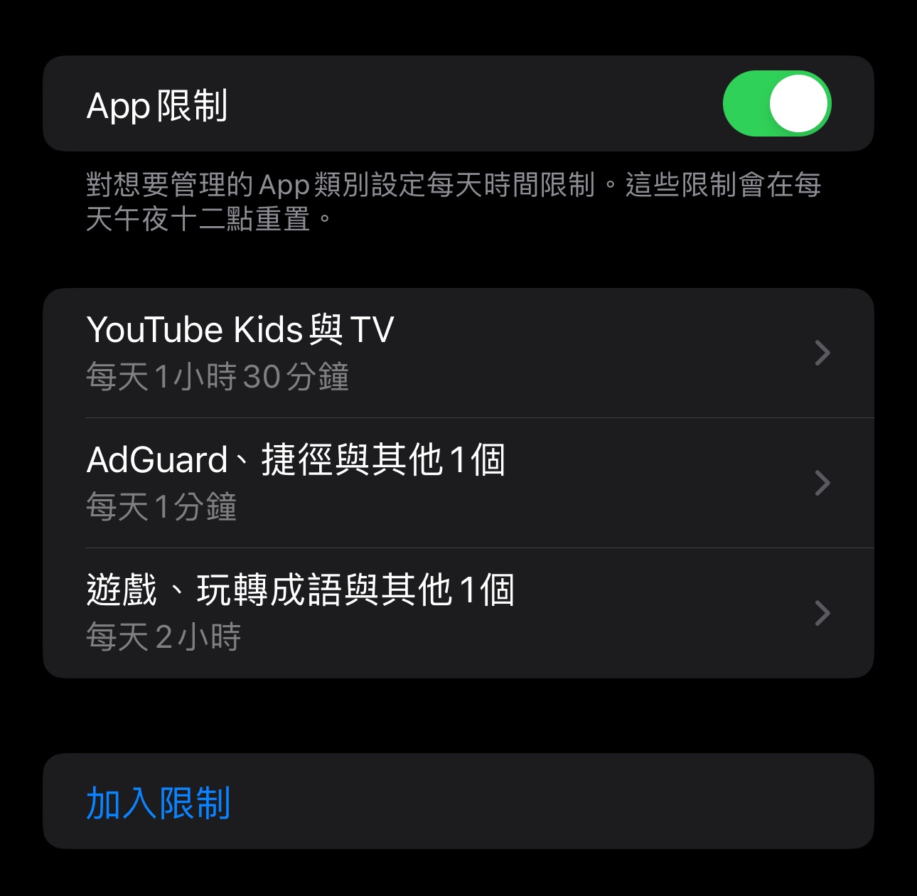 推 jraz: 家庭群組兒童帳戶可以設定螢幕使用時間,所有的app都可以設 06/03 12:09