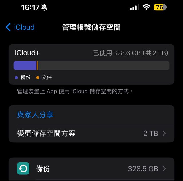 iCloud顯示備份有328GB