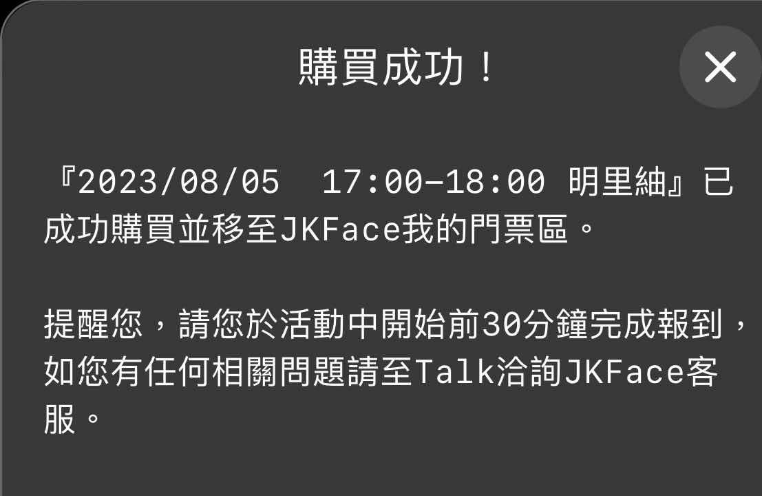 推 stevejack: 我的門票那邊有預約成功 應該就算數吧? 沒有跳出購買 07/28 19:24