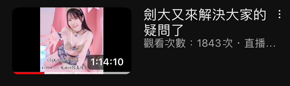→ aass173656: 劍大直播是指前天那次嗎?(當時有跟沒印象有聽到河 08/14 16:34