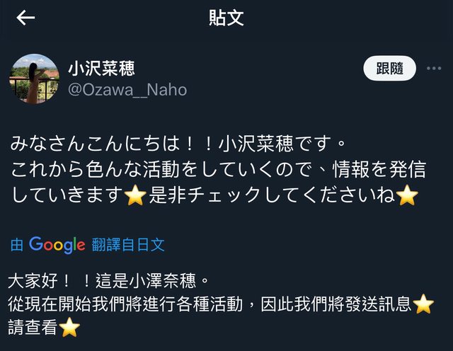 : 是看到吉澤明步轉發的,所以應該是真人