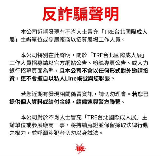 人展都有詐騙集團打著「成人展打工,能和女優互動」的名號,去詐騙取個資等問題。(大