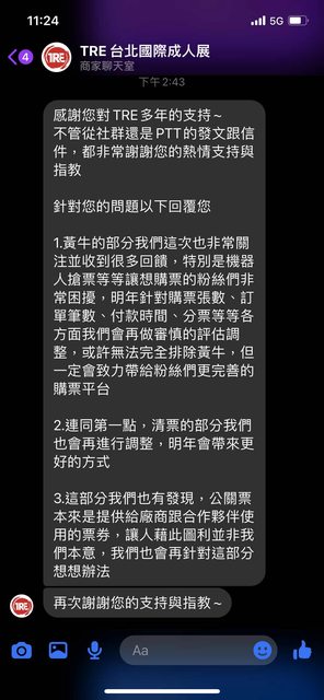 → saiulbb: 不能全怪黃牛 當然你可以適度表達意見 但也要站TRE想想 08/20 20:05