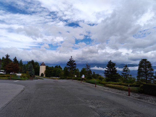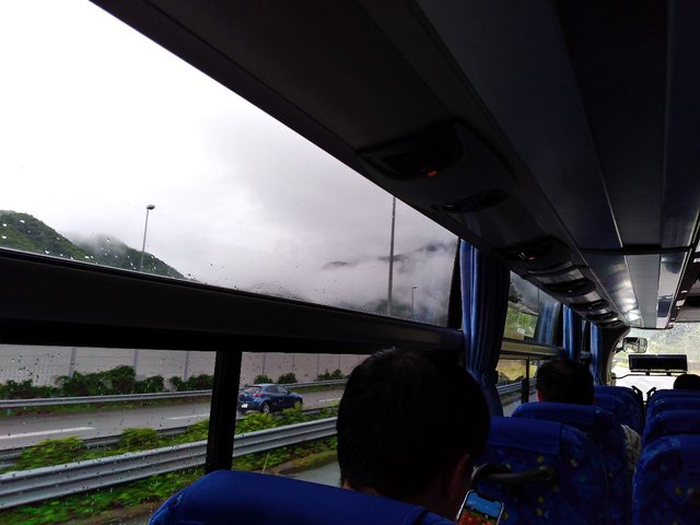 : 之後就到了途中的休息站休息。 到休息站的時候外面正在下著大雨但是我沒有拿傘下車