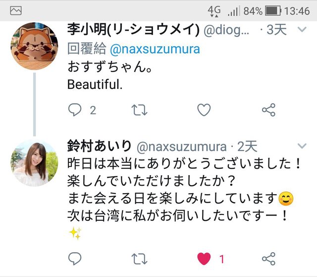 : 還好おすずちゃん認得你然後馬上就答應了這件事了。不過當時我也因為很緊張所以日文