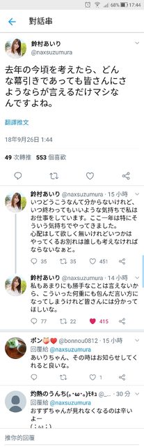 : 推 ray79321: 難過,喜歡的偶像跟女優今年都要退,今年真難熬 09/28 00:46