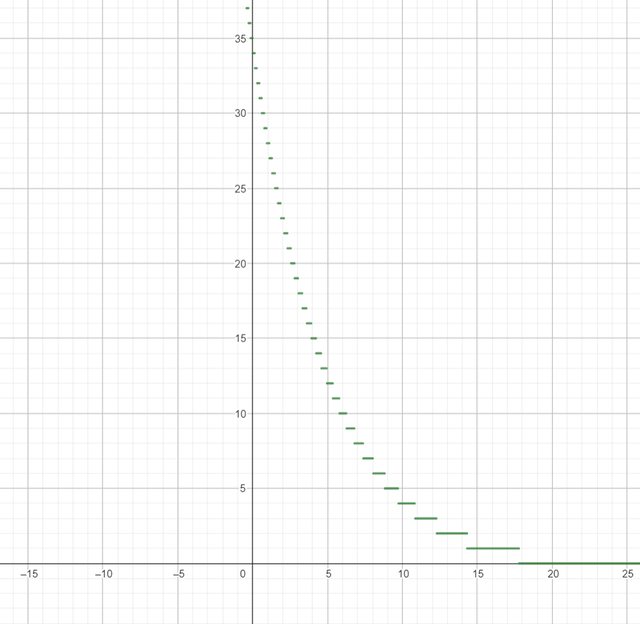 y = floor(35*e^(-0.2x)) 就長下面這樣
