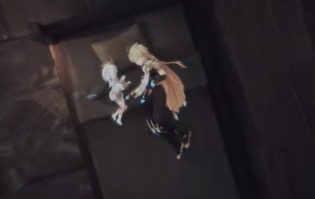 滿好奇的 派蒙怎不是被抱著睡