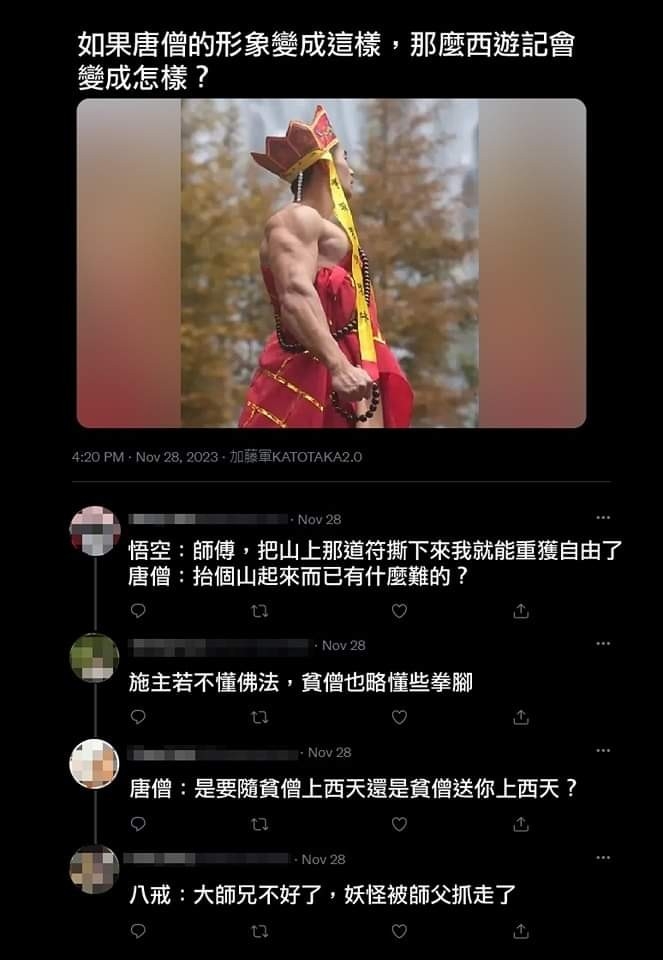 → kwcarter: 很久以前巴哈好像就有人畫過肌肉版的唐三藏,最近不知道 12/15 16:14