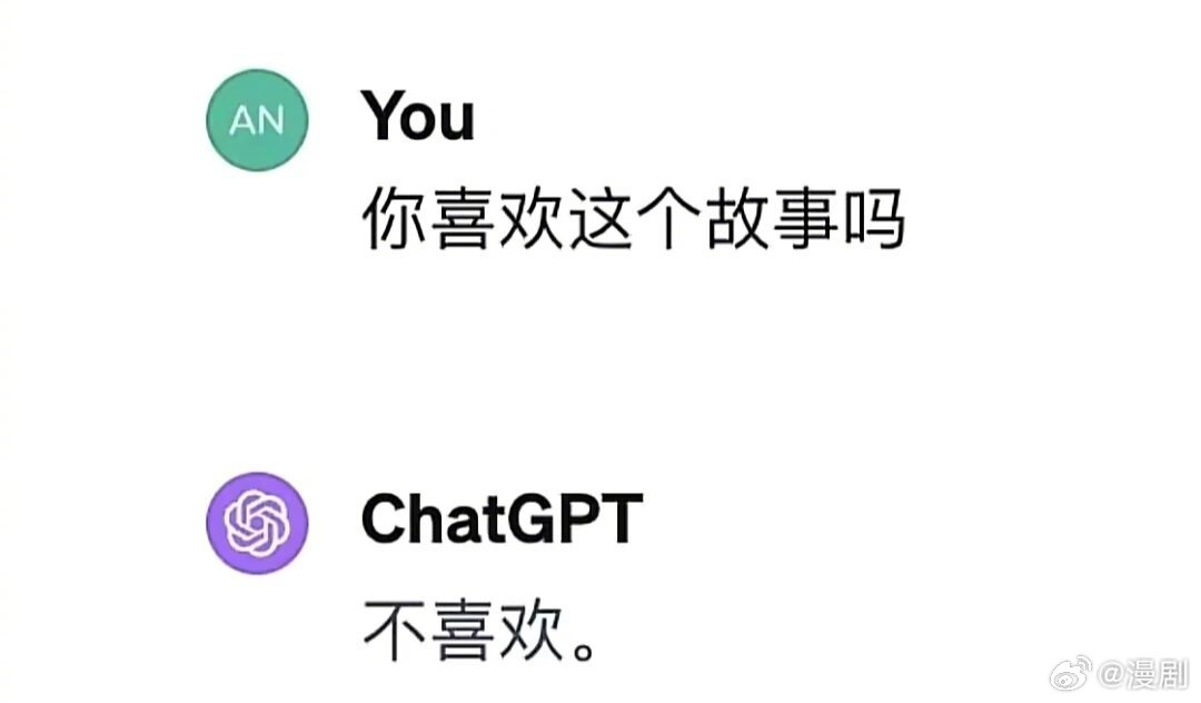 推 movieghost: 問:AI會毀滅人類嗎 ChatGPT:如果你們再這樣玩的話 12/19 13:54