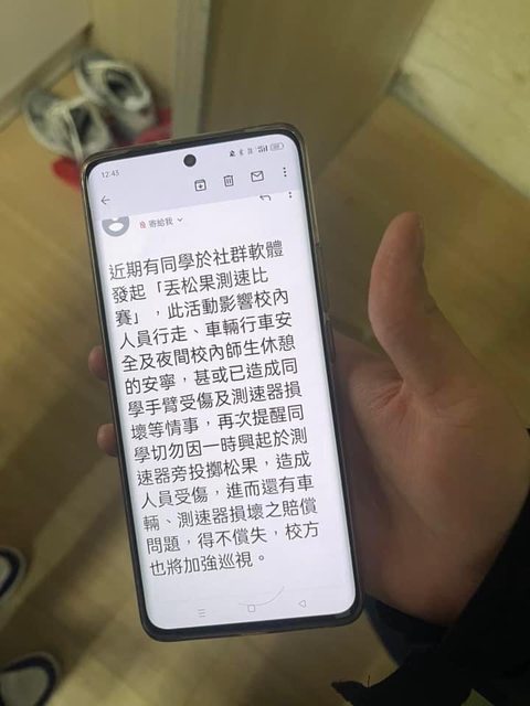 噓 billy4305: 都丟到人受傷 砸破測速器 還敢揶揄學校? 都大學生了 12/24 10:26