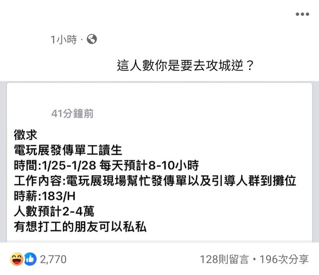 → rook18ies: 靠北,徵2到4萬員工,又不是選舉的走路工 01/11 23:08