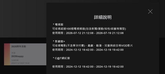 : 輸入序號可兌換電視館、影劇館、網紅館 7天
