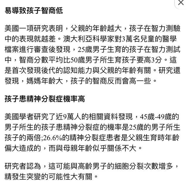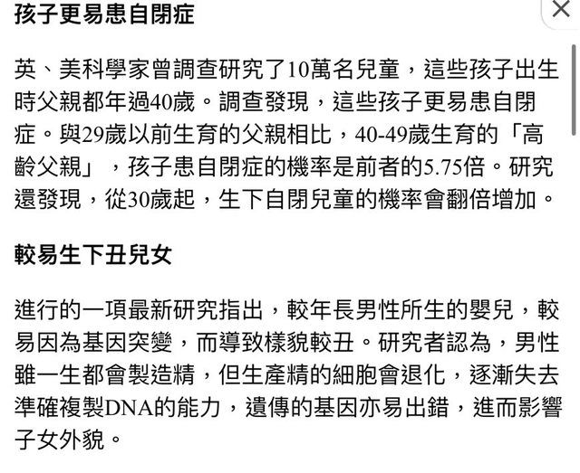 → mosquiton : 40歲以上父親容易造成的孩子遺傳問題 高齡母親反而 11/16 11:16