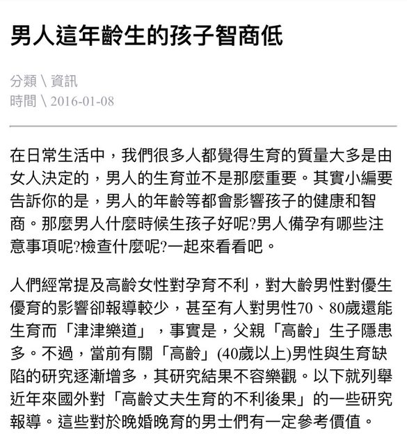 → nanalia : 高齡產婦的風險如下..然後貼文章是在講「男人」生育 11/16 06:43