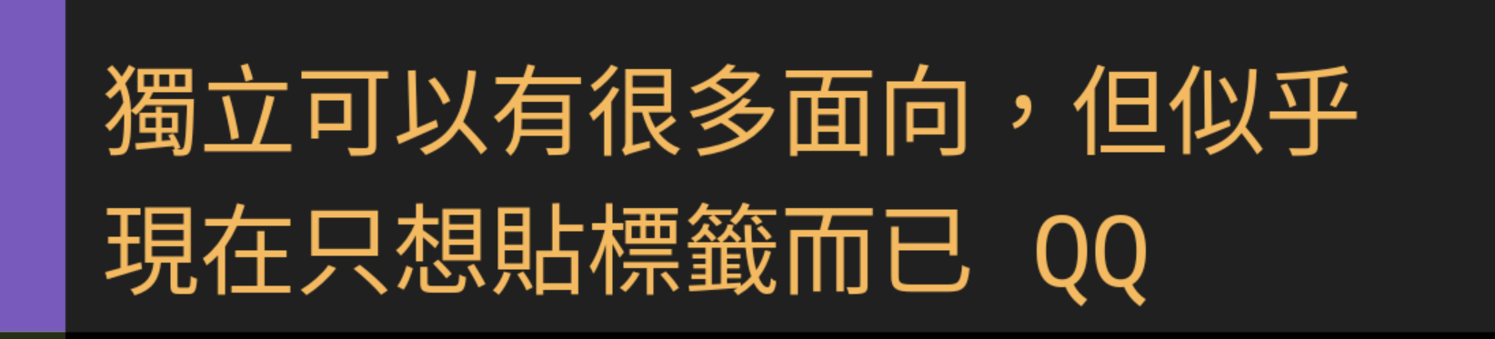 yaokut : 獨立可以有很多面向,但似乎現在只想貼標籤而已 QQ 12/19 07:02