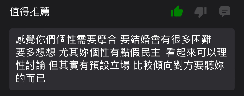 噓 husky2 : 男友媽說的也沒錯,妳們個性根本就不合,不會因為 01/02 17:41