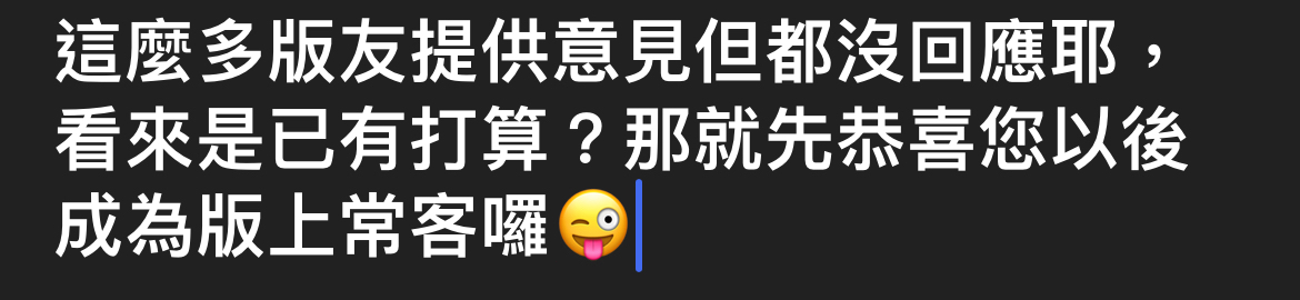 → Angelfly77 : 這樣有點貪心 不太ok 01/17 21:08