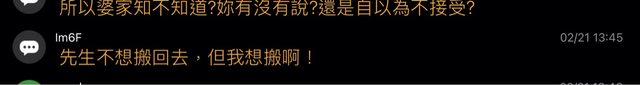 → iiiivy : 不過老公都不想搬過去了,感覺老公有機會坦這部分 02/21 16:55