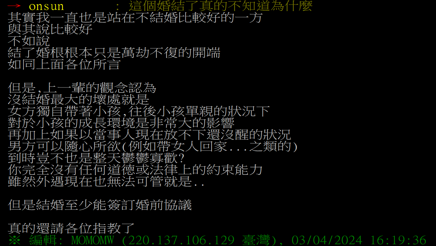 → alice0514 : 賤自己(還被離婚) 懷孕是自己選的 一直住在男生家 03/05 09:55