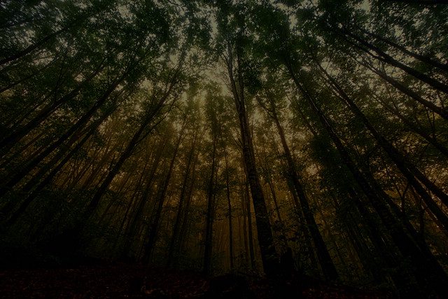 在林中感覺遮天蔽地,就像有一層綠色的屋頂在頭頂上一樣