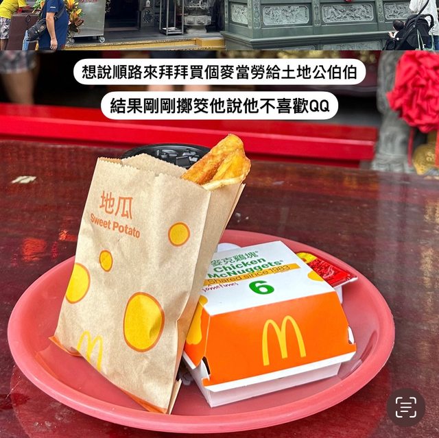 噓 RIOK: 土地公喜歡吃麻吉……你怎麼會買麥當勞呢? 07/16 07:58