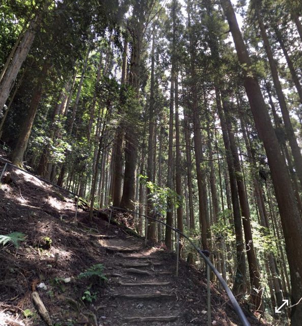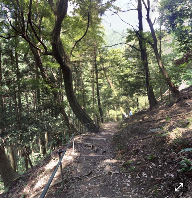當時我和朋友兩人在爬山時,有個地方是很長的向上樓梯(比第一張圖的樓梯還長還直),樓梯的盡頭是向左沿著山邊的路,這裡種滿枝幹細長的樹(像是第二張圖一樣)。