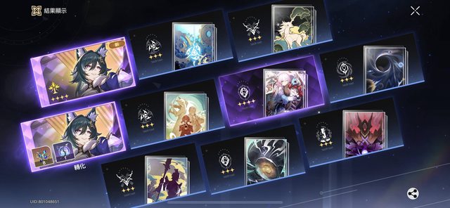 抽卡結果:羅剎*2 御空*3 羅剎專屬光錐*1