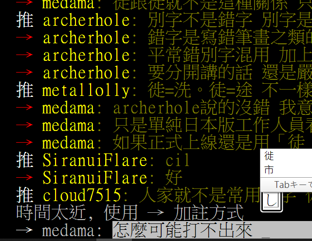 → metallolly: 中文暴力複製貼上日文字型是有徒徙這兩個字的 。但翻 07/04 15:44