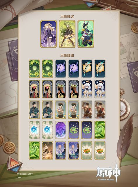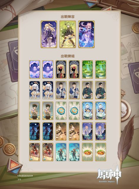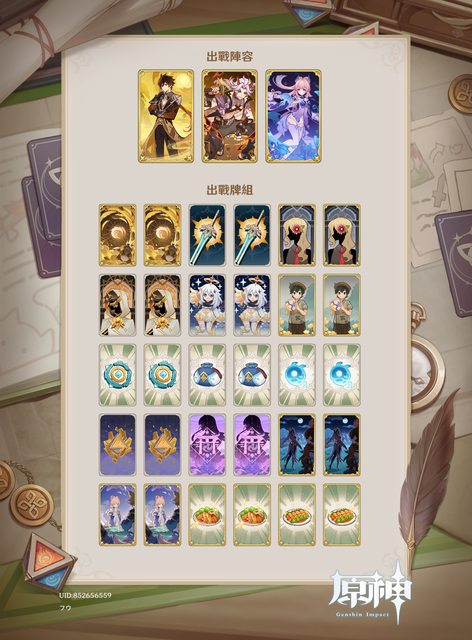 起手我是目標抓大派蒙,或許凹某些牌的起手分數可以更高,