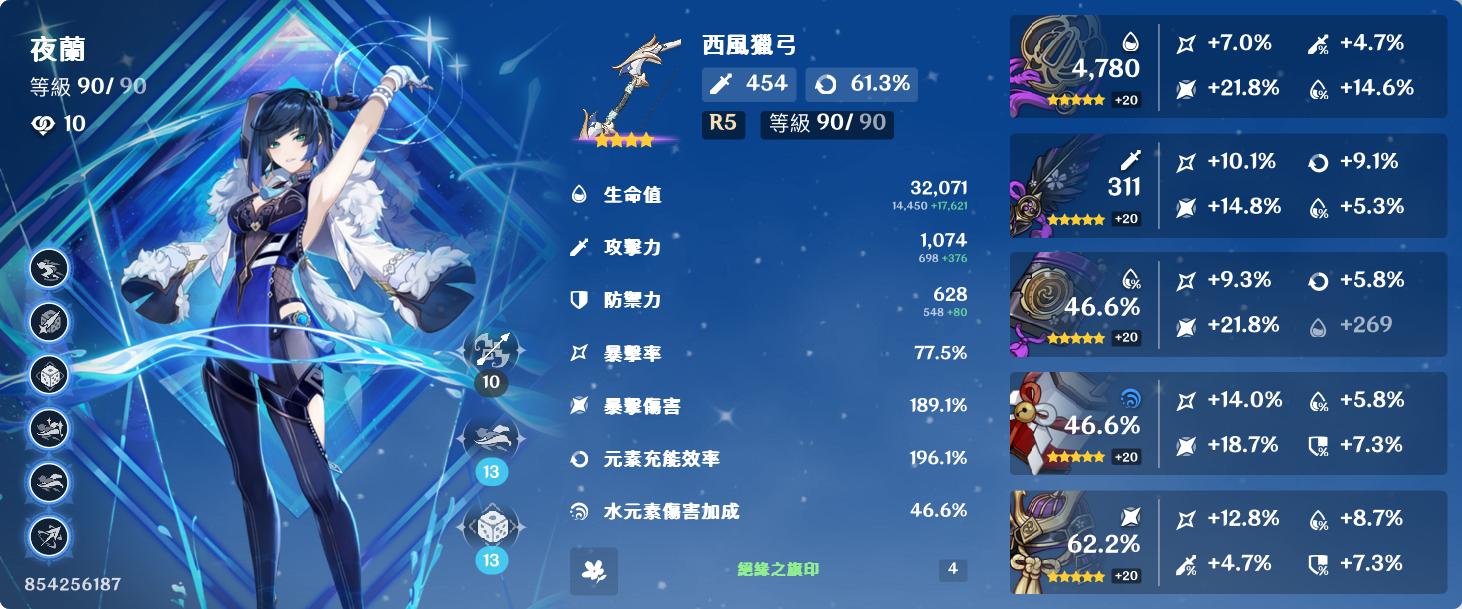 → gtfour: 我的夜蘭1命 絕緣4 精5西風弓+生命沙 充能210% 08/23 13:02