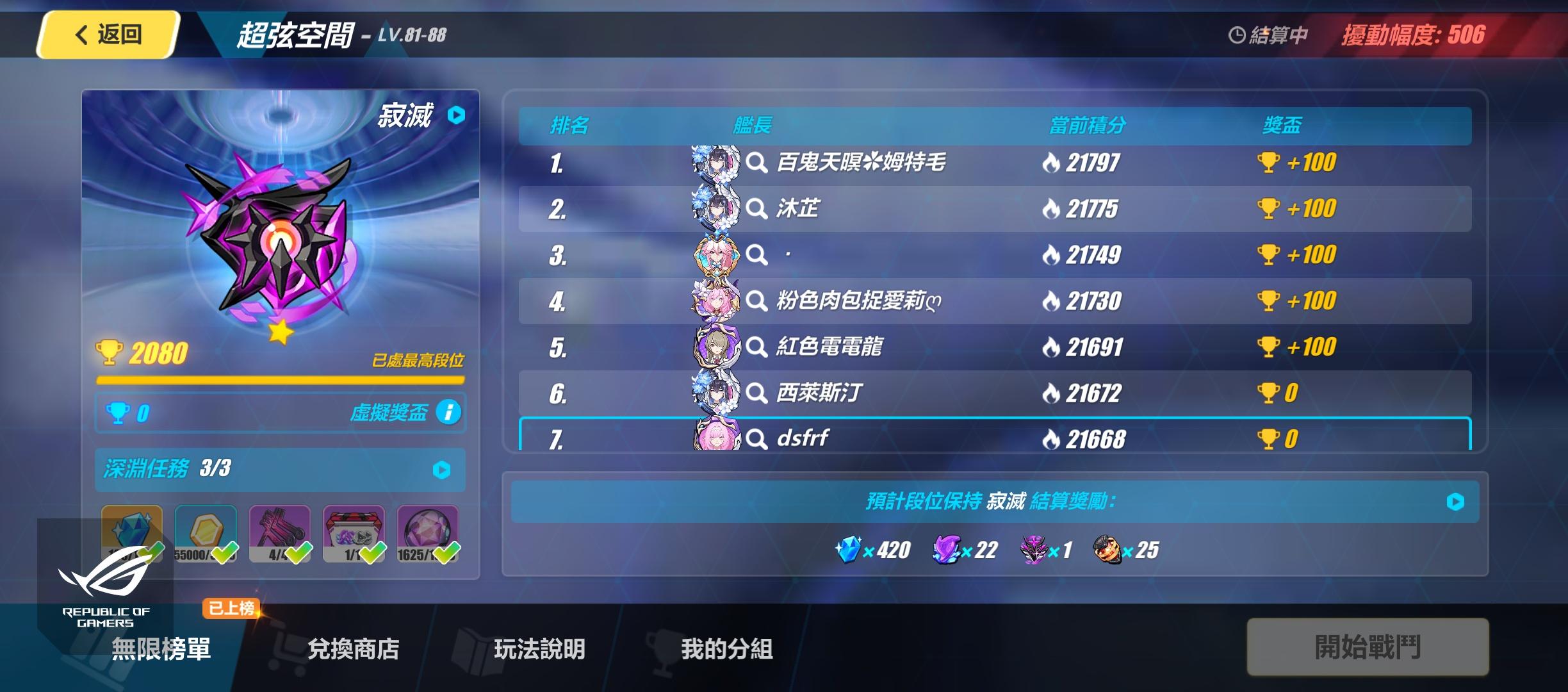 推 alerzart: 現在寂滅是506,前一陣子還490幾,轉眼就破500了 09/02 21:50