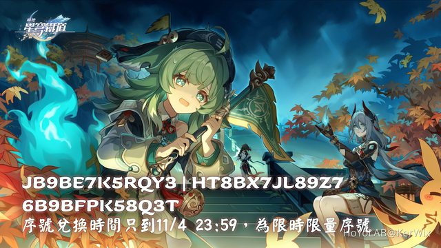 星瓊序號兌換時限到11/4 23:59(UTC+8),記得趕快換喔~~