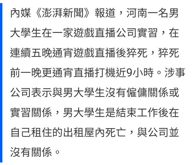 → Kans9527: 在中國那邊的新聞是有寫「代肝」的,只是這個大學生真 11/21 14:08
