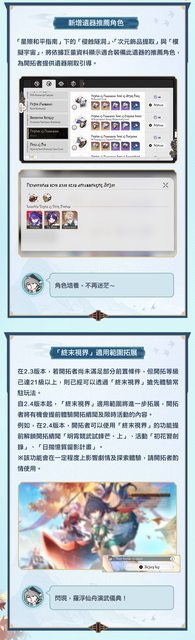 還有新手福音,2.4開始可以跳過主線,直接跑最新的開拓續聞和常駐活動