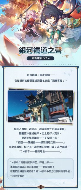 本期銀河鐵道之聲的主題是——更新電台!本期節目將會為開拓者介紹2.4版本中部分改良