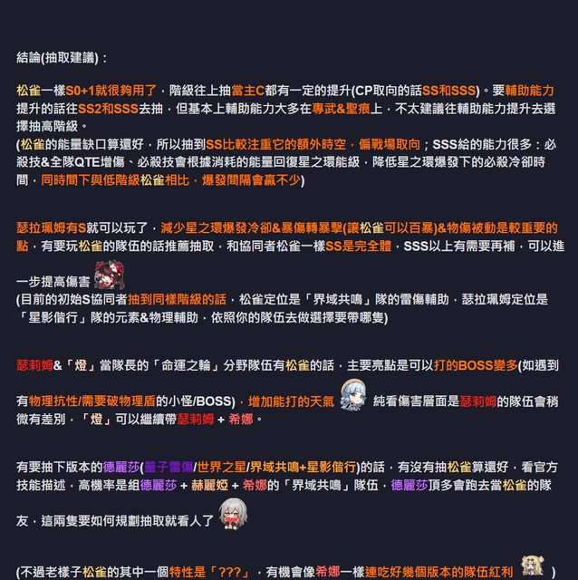 標題[崩壞] 7.6-松雀隊伍流程&比較+抽取建議